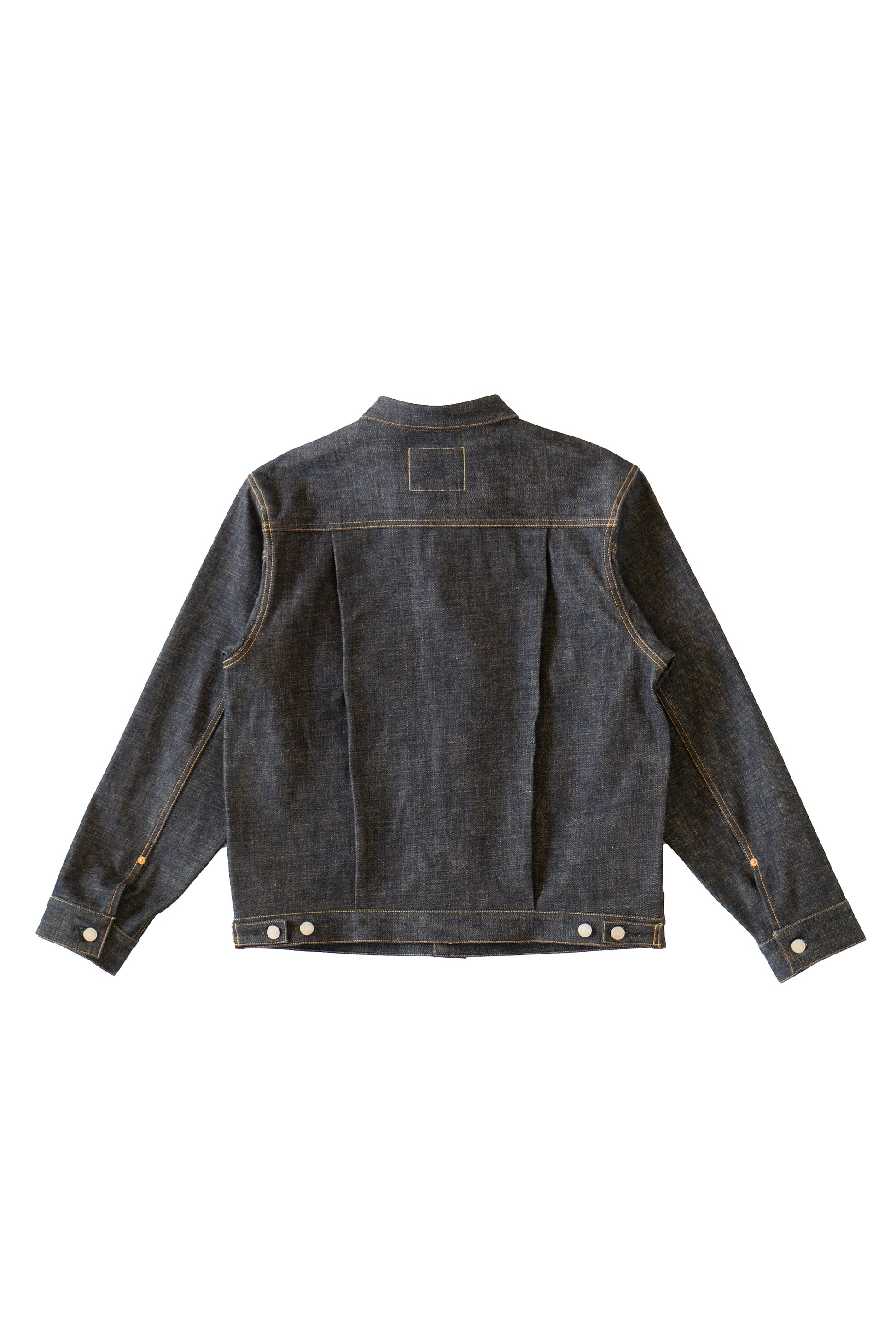 織り上がった生地は防縮加工のみを行い、あえてねじれ防止、毛焼きは行わず、生地の特徴を引き立たせています。リジッド(未洗い)の状態から着用することで力強い色落ちがお楽しみいただけます。
